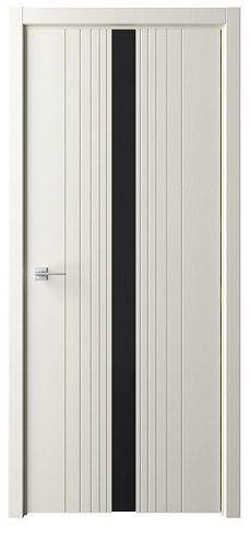 Дверь Геометрия-8 ширина 90 см Слоновая кость Эмаль Стекло черное кромка В цвет полотна в Смоленске