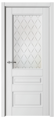 Дверь Классика-3 ширина 90 см Белый Эмаль Стекло мателюкс "Лорд матовое" кромка В цвет полотна в Смоленске