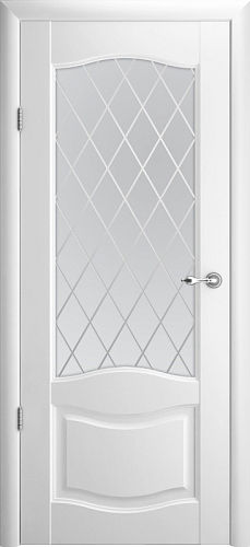 Дверь Лувр-1 ширина 80 см Белый Vinyl Мателюкс с алмазной гравировкой "Ромб" с замком в Смоленске